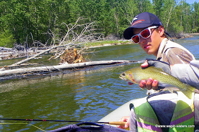Kris graduated from high school and Greg decided it was time to do a fishing trip to the Bitterroot with him. They live in Canada and have plenty of beautiful mountains and rivers there, but coming to the Bitterroot was something special. Nice fish, Kris. Jack Mauer is holding it for him.